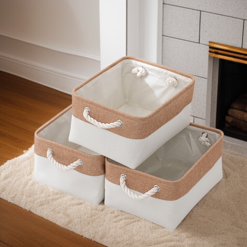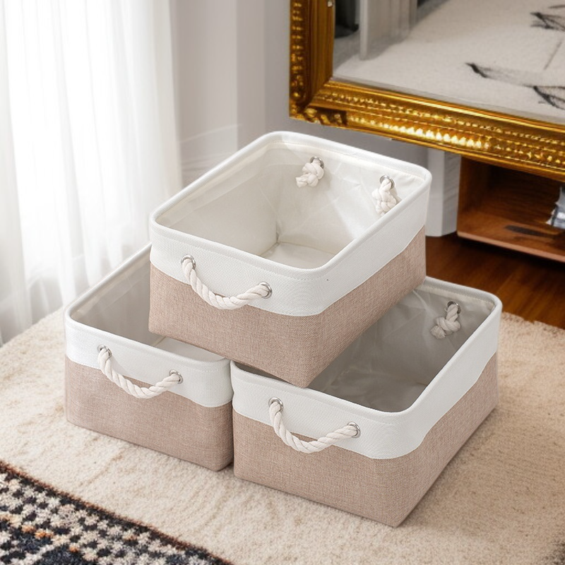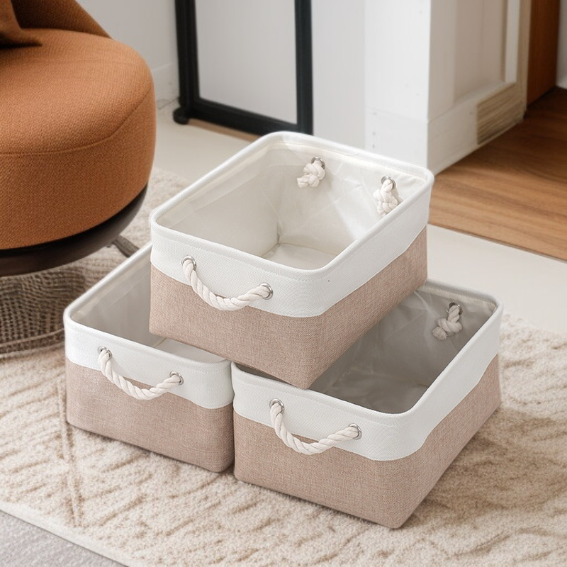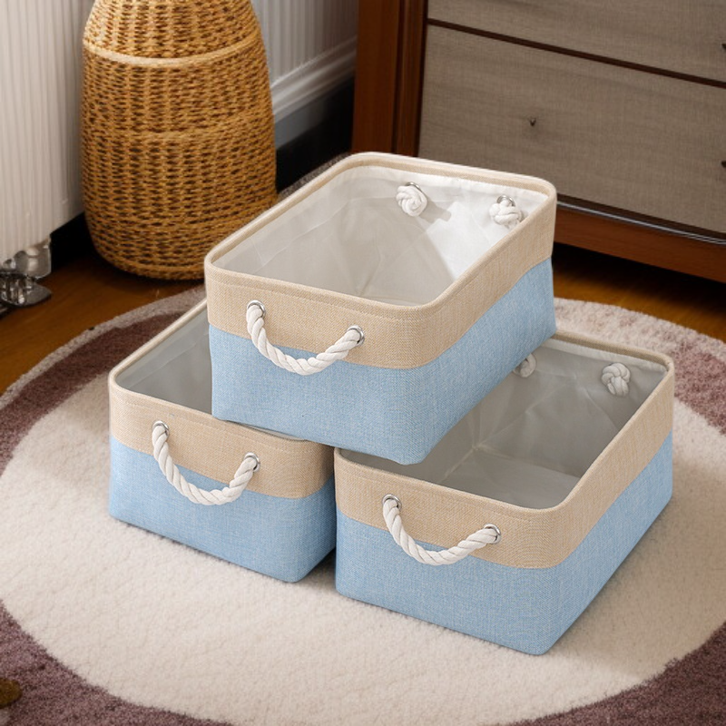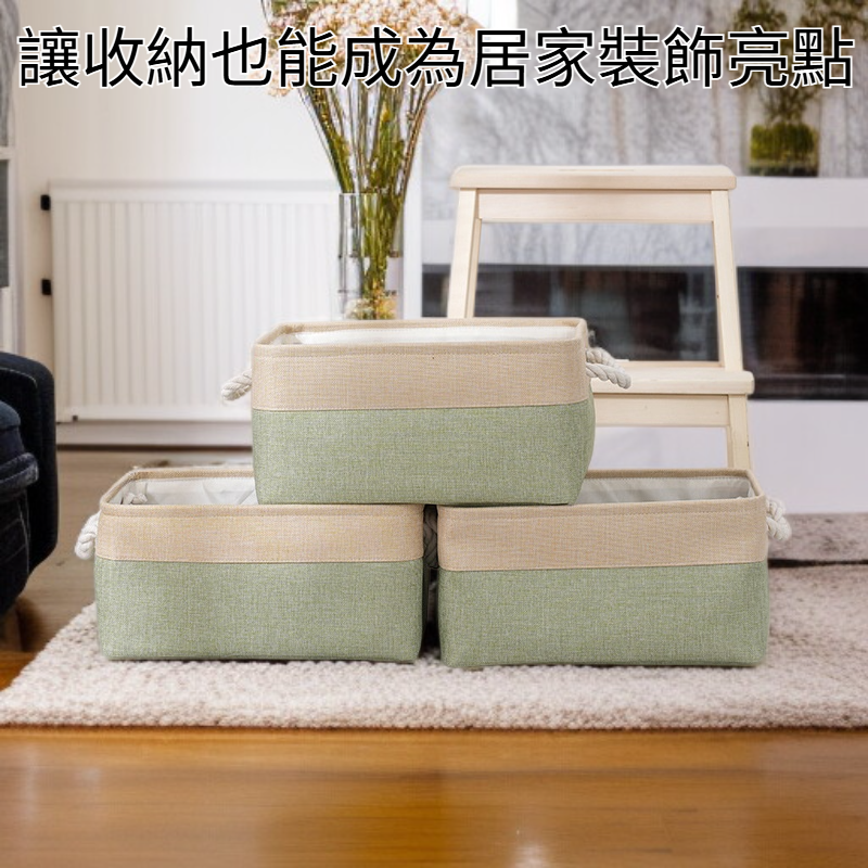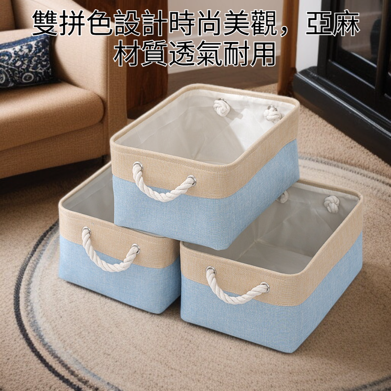 雙拼色布藝棉被收納筐 大容量亞麻儲物籃