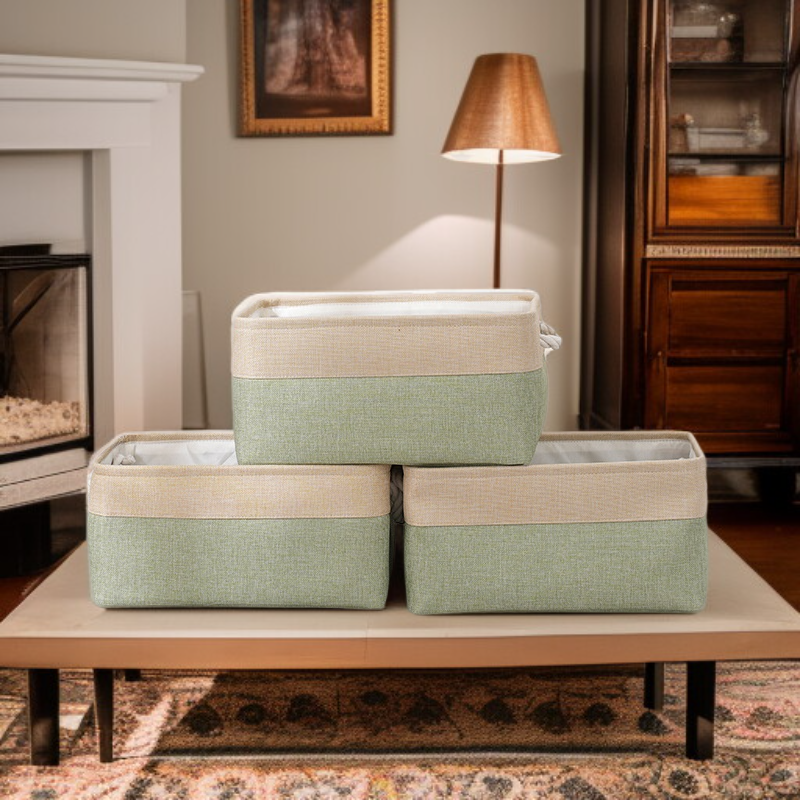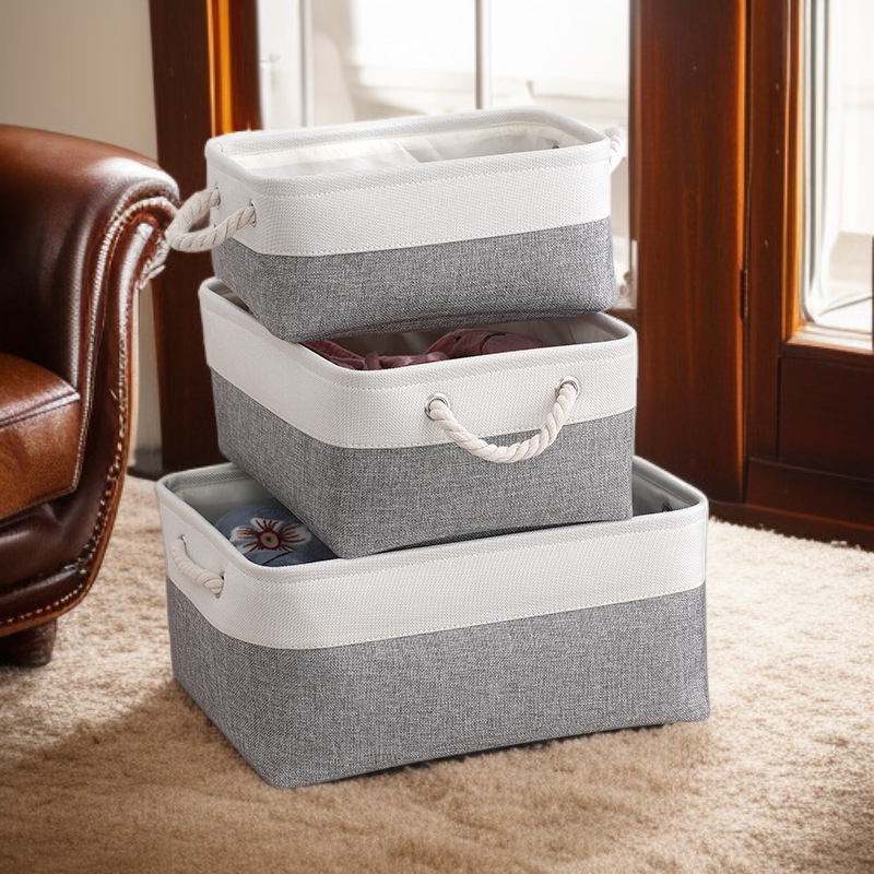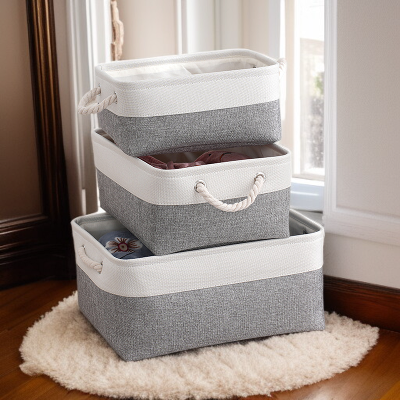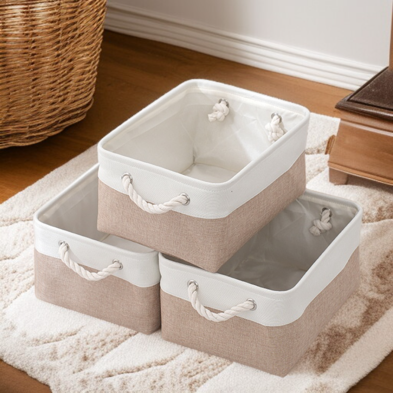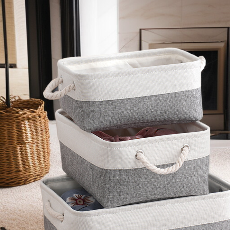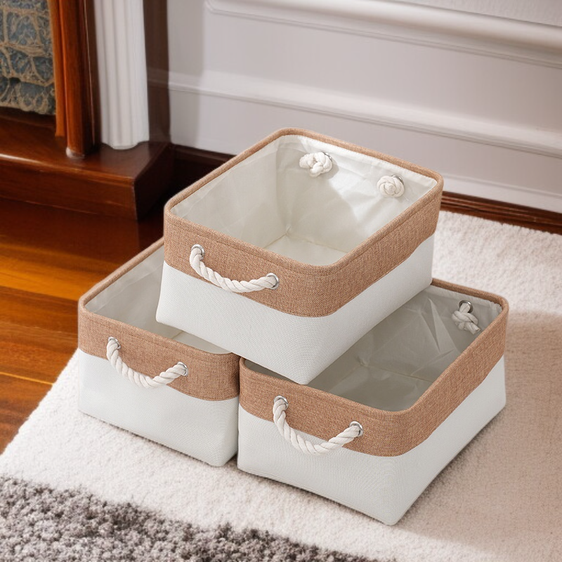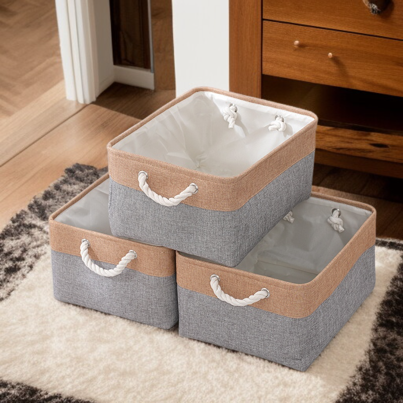 雙拼色布藝棉被收納筐 大容量亞麻儲物籃